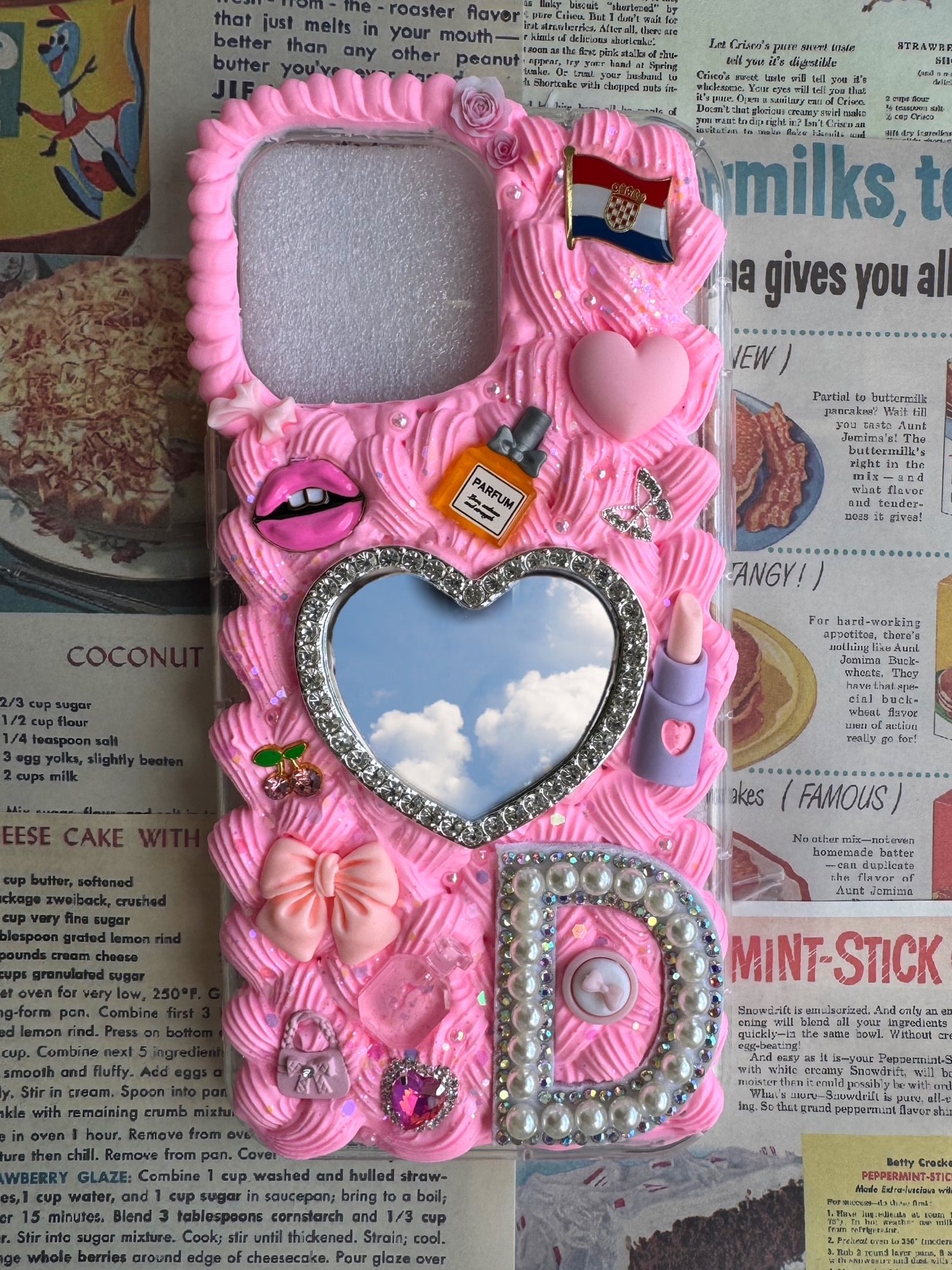 Diese Hülle ist das perfekte Accessoire für jedes It-Girl. Inmitten ein kleiner silberner Makeup Spiegel, umgeben von vielen girly-Details.